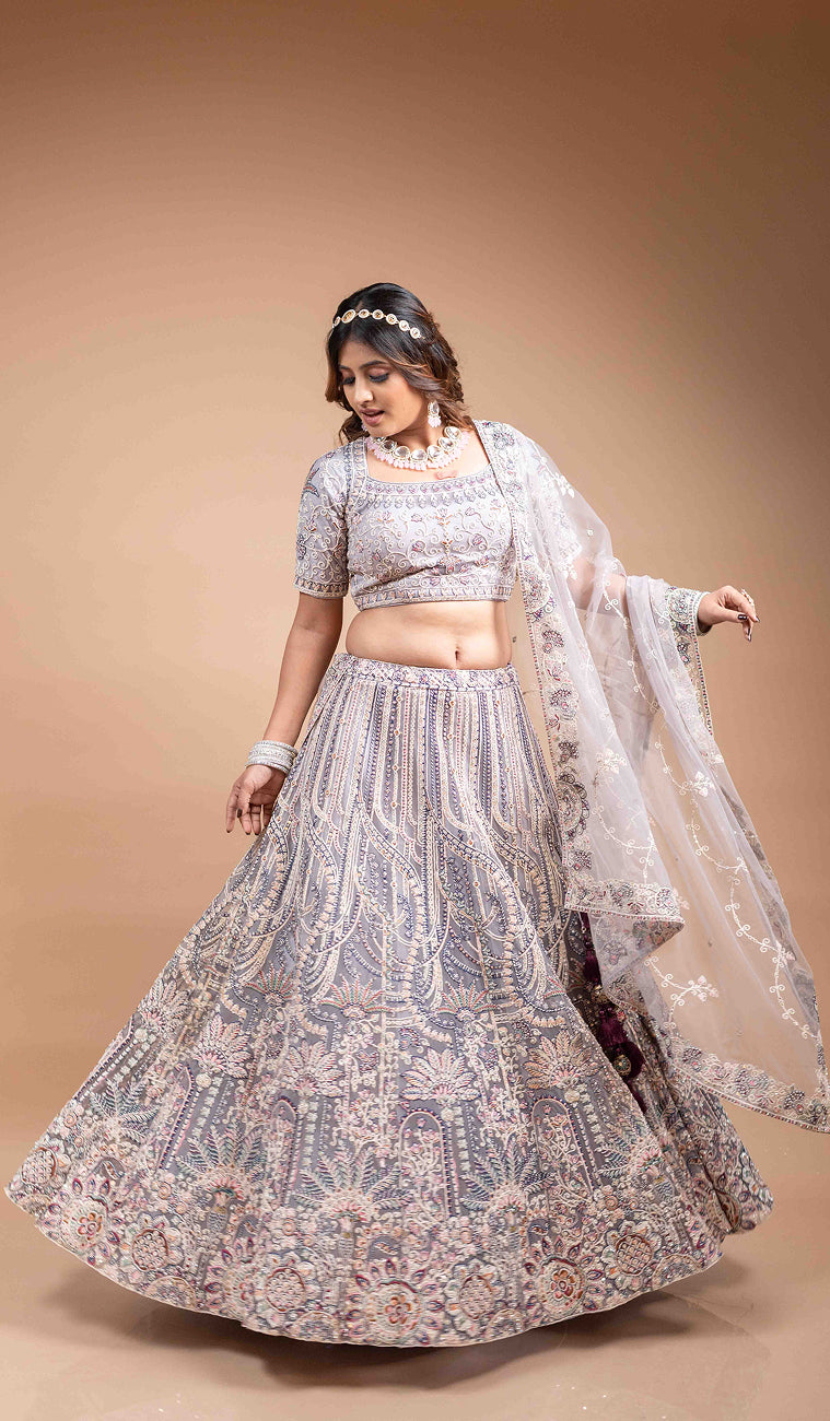 Grey machine embroidered lehenga set